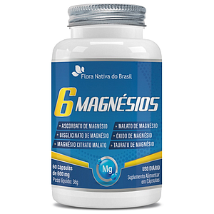 6 Magnesios - Bisglicinato, Malato, Taurato, Citrato, Oxido e Sulfato 550mg 60 cápsulas Flora Nativa